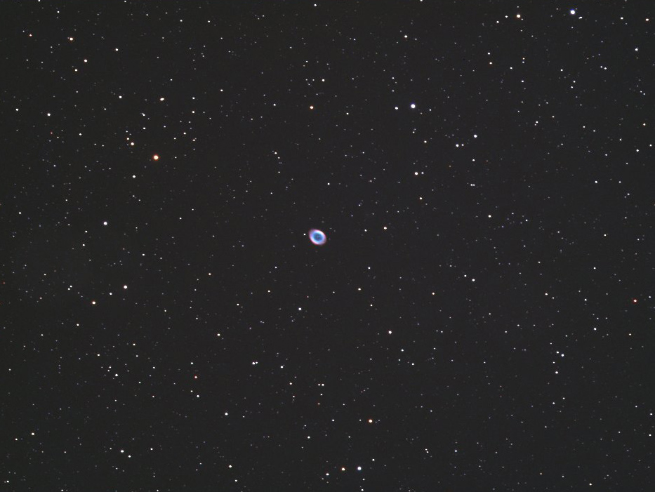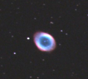 Object: M57 - The Ring Nebula: A planetary nebula located in the constellation of Lyra. Approximate distance of 3,000 light years. A visual brightness of 8.8 (mag) Telelscope: SV80L - f/7.5 - piggybacked on LX200 Camera: Starlight Xpress SXV-H9 Guiding: SXV Guider through LX200 10" f/4.0 Exposures: L= 10 X 90s (15min), RGB= 6 x 90s ( 9 min each) Filters: Schuler LRGcBc Filters Comments: Taken from Home. Tried a wide wide view of Ring Nebula with SV80L. Image shown is 70% of the original size. Combined and processed with AA3. |