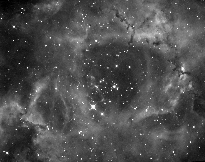 Object: NGC2244 & The Rosette Nebula: A diffuse nebula located in the constellation Monoceros. NGC2244 is the open star cluster situated within the nebula. The estimated distance is 5.5 (kly). NGC2244 has a visual brightness of 4.8 (mag.) Telelscope: Stellarvue 80mm f/6, piggybacked on LX200 Camera: Starlight Xpress MX916, w/ SXV upgrade Guiding: SXV guider through LX200 10", f/4 Exposures: 15 x 4 min (1 hr), 1x1 binned Filters: IDAS LPS, Schuler Ha Comments: Taken from home. First try at this one, it was 2:45am and I was just finishing IC434. I just had to give it try before calling it a night. I threw in the Ha filter and was able to get 40 minutes. |