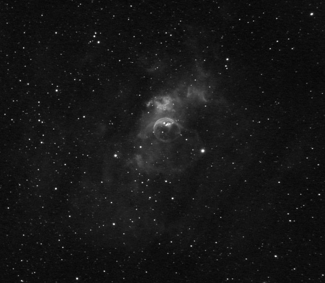 Object: NGC7635 - The Bubble Nebula located in the constellation Cassiopeia. The approximate distance is around 7100 Light Years. Telelscope: NGC7635 - The Bubble Nebula located in the constellation Cassiopeia. The approximate distance is around 7100 Light Years. Camera: Starlight Xpress SXV-H9 Guiding: SXV Guider through LX200 10" f/4.0 Exposures: Ha = 38 X 120s (76 minutes total) Filters: Schuler Hydrogen Alpha Comments: Taken from Home. Reduced the size for the web page to 60% of original. Well retry again and capture more time. First attempt at the Bubble. |