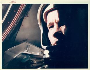 | GT-3, Vintage B/W Glossy - NASA Photo ID's: 65-H-444 & 65-H-445 Description: Astronauts John Young and Gus Grissom are seen through their respective windows going through last minute checks before the hatches are closed on the spacecraft. Photo (Left): NASA photo ID 65-H-444. 8X10 in excellent conidition with black NASA description on reverse. Photo (Right): NASA Photo ID 65-H-445. 8X10 in excellent condition with black NASA description on reverse. |